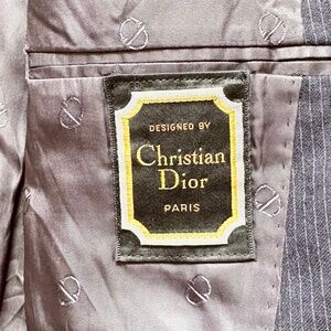 Christian Dior Mens Striped Wool Suit Jacket Navy-Blue Pinstripe Vintage
