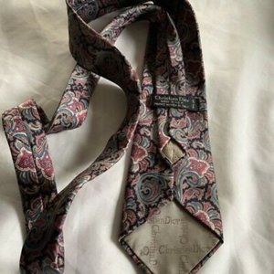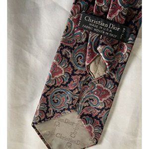 Christian Dior Mens Tie Rose Blue Paisley Woven Italy Necktie Career Made In USA