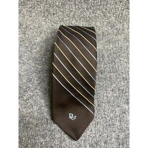 Christian Dior Men’s Tie Necktie Brown Striped Embroidered Logo Vintage