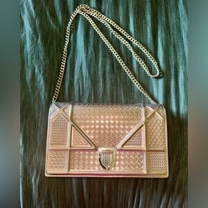 Christian Dior Metallic Patent Micro-Cannage Diorama Wallet on Chain