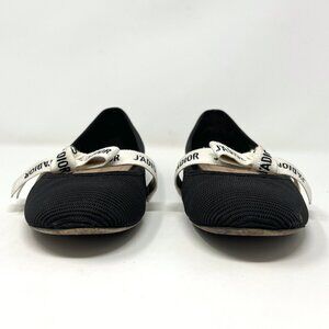Christian Dior Miss Dior Black Mesh Ballet Flats with J'ADIOR Logo Bow, Size 38