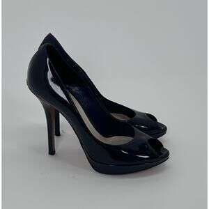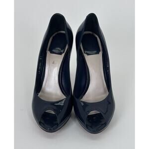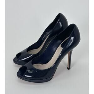 ⭐️ Christian Dior Miss Dior Open Toe Patent Leather Navy Heel Pump Shoes Sz 37