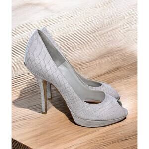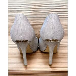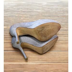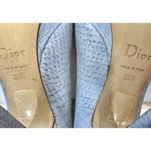 These Christian Dior Miss Dior Suede Snakeskin Embossed Peep Toe Platform Pumps in size 35.5 are such a classic and sophisticated Dior pump! Featuring light gray uppers in suede with embossed snake skin print and stiletto heels, these shoes are perfect for any occasion and are a timeless example of Dior aesthetics with a modern twist with the snakeskin texture. If you love and appreciate Dior design and quality, you need these fabulous designer shoes in your collection!