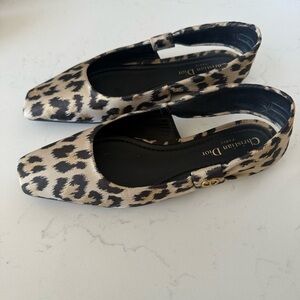 Christian Dior Miza Canvas Animal Print Sling Back Flats Size: 8.5