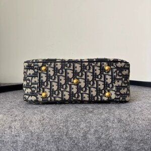 Christian Dior Monogram Canvas Handbag, Classic Logo Print, Black & Beige,