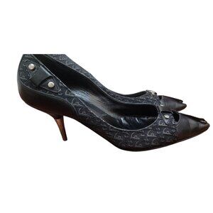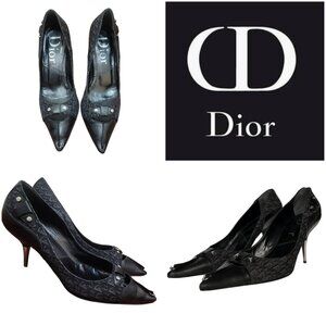 Christian Dior shoes, Dior monogram heels, CD logo canvas pumps, leather pointed toe heels, Dior vintage footwear, Dior size 36, Italian designer heels, black monogram shoes, collectible Dior, classic luxury pumps, slim heel Dior