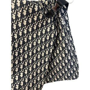 This sleek Christian Dior wrap skirt showcases the iconic monogram print in black and white. The adjustable buckle adds functional elegance to the versatile design.