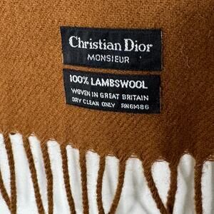 Christian Dior Monseur lambswool scarf. 100% Lambswool. Tan/brown with fringe. Made in Great Britain.