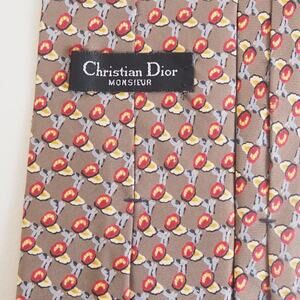 Christian Dior Monsieur 100% Silk Neck Tie Gold & Red Flower Print VTG 90s