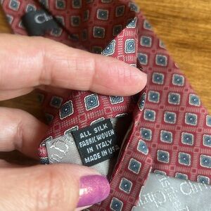 Christian Dior Monsieur 100% Silk Tie. Red Blue Geometric Pattern