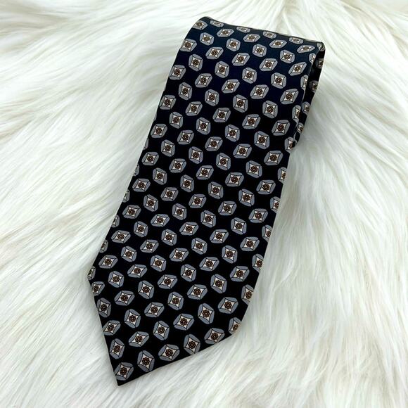 Christian Dior Monsieur All Silk Floral Geometic Tie - Navy