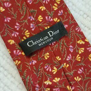 Christian Dior Monsieur Floral Red Tie 100% Printed Polyester Made In USA