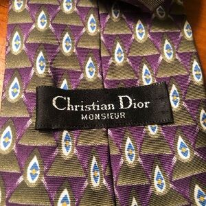 Christian Dior Monsieur Purple and Green Patterned All Silk Tie