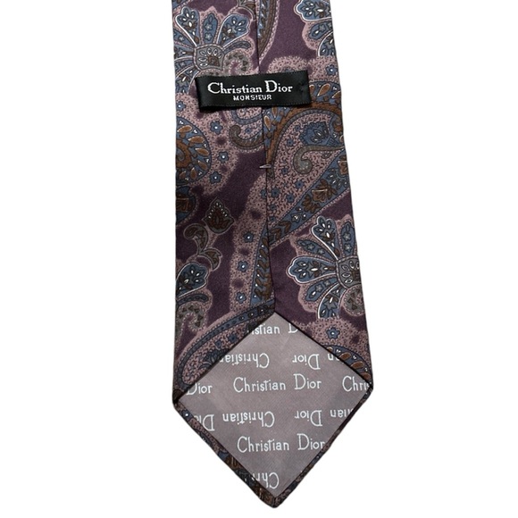Christian Dior Monsieur Silk Necktie Purple Blue Brown Geometric Formal Tie