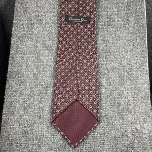 Christian Dior Monsieur Tie Red Geometric Allover 3 3/4" X 57 3/4" All Silk USA