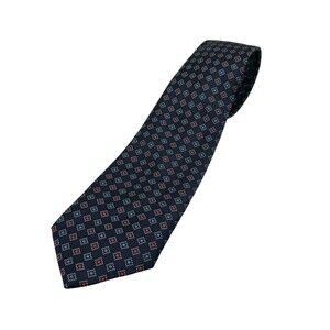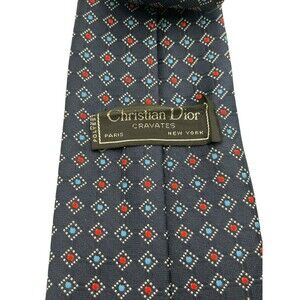 Christian Dior Navy Blue Geometric Neck Tie Made in USA Fabric Italy Used