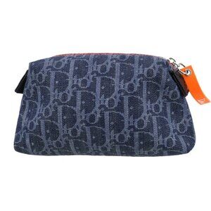 Christian Dior Navy Canvas Flight Trotter Cosmetic Pouch Bag