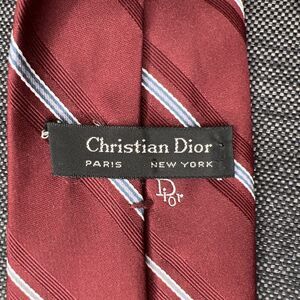 Christian Dior Necktie Burgundy Red Striped Classic Power Tie