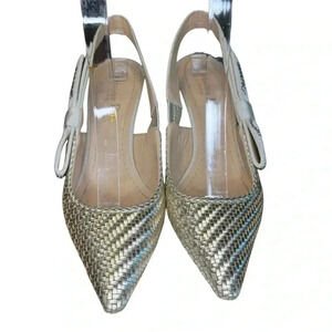 Christian Dior Nude Chrome Shoes With Crystal On The Side Ribbon Band.