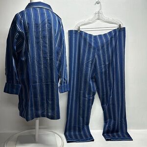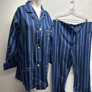 Christian Dior Pyjama Pajamas 2 Piece Set Collared Shirt Pants Blue Striped Men's Size Large