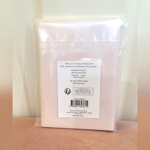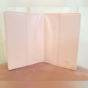 Elegant pink passport holder with Christian Dior branding and star accents.