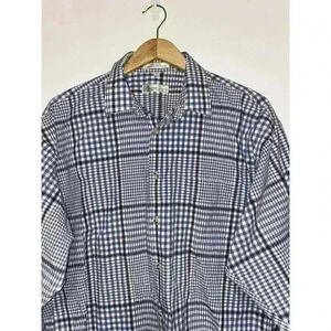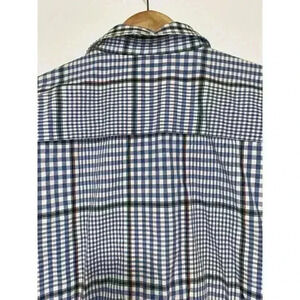 Christian Dior Plaid Dress Shirt Button Down Blue White Collared Shirt Size L