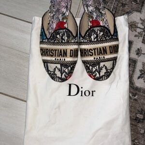 Christian Dior Printed Embroidered Accent Mules IT 40