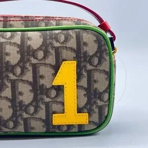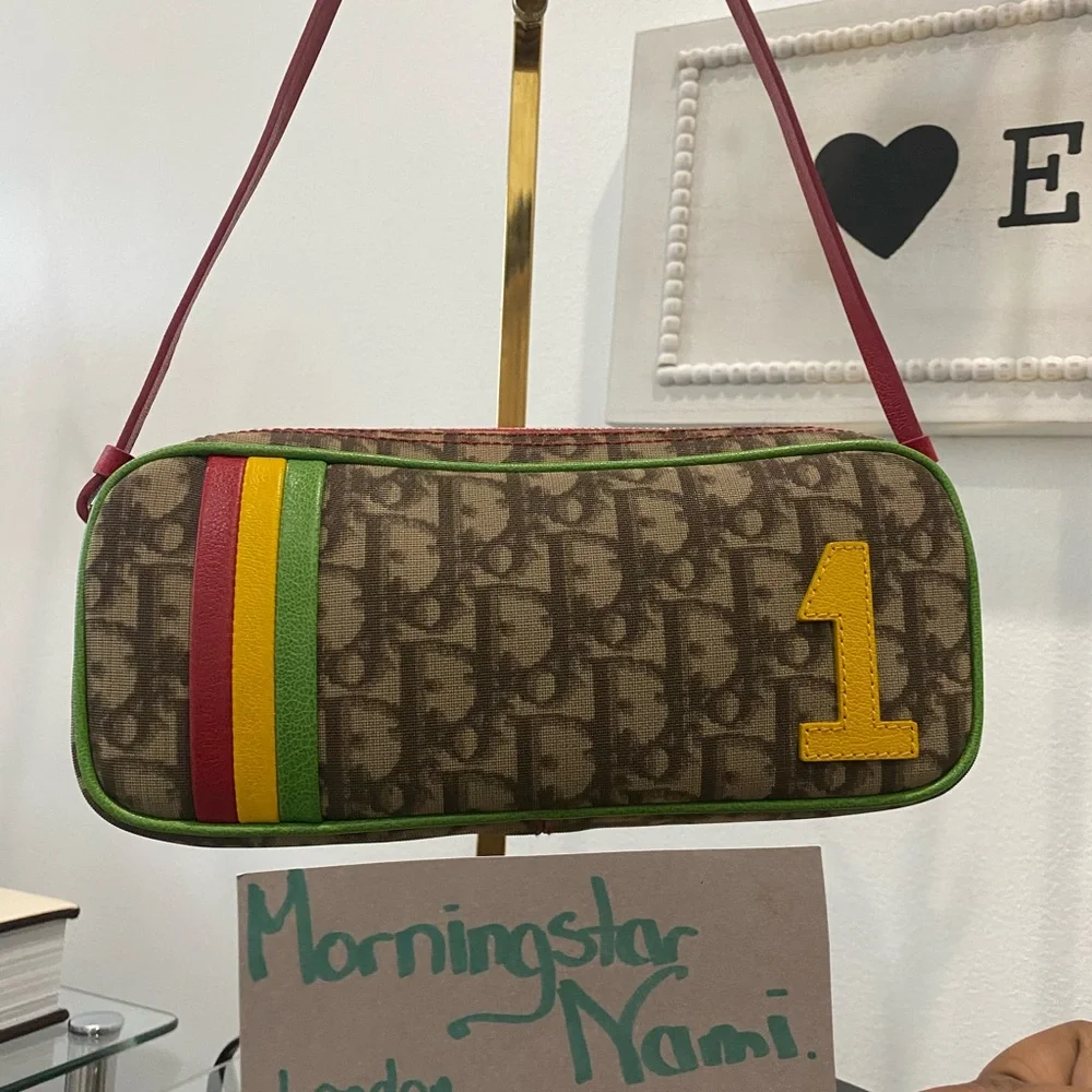 Rare hard to hind 1 Rasta Collection from Christian Dior. Classic Monogram with vibrant red interior. Features a sleek silver zipper.