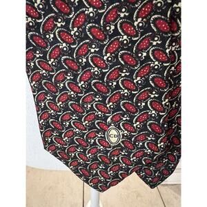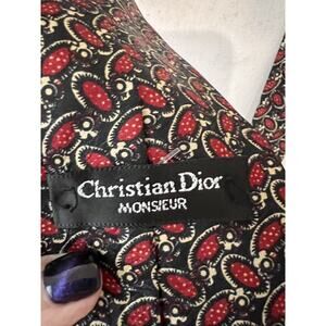 This Christian Dior men's tie in red and blue is a designer accessory that showcases a geometric pattern and is made in the USA. The tie features the iconic Dior logo as accents, giving it a sophisticated and stylish touch. Perfect for a business setting or adding a pop of color to a formal outfit, this tie embodies a mix of retro and preppy styles. Made of polyester, this high-quality tie adds a touch of luxury to any ensemble.