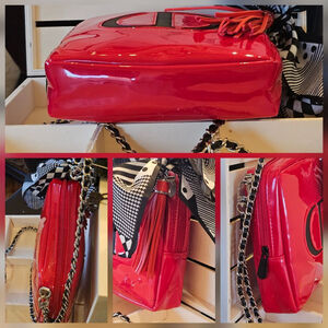 Christian Dior Red "CD" Clutch w/Crossbody Chain, Charms & Twilly Added NWOT