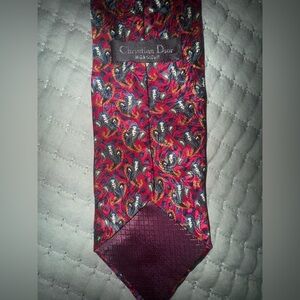 Stylish tie with intricate red and blue design. Ideal for formal events. CHRISTIAN DIOR!
