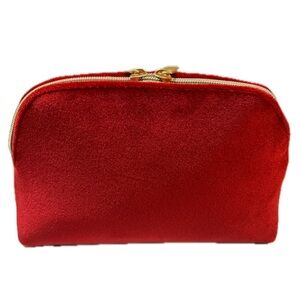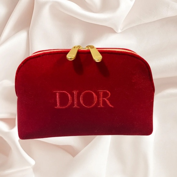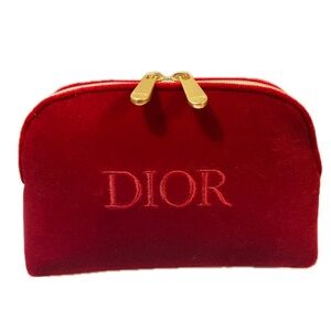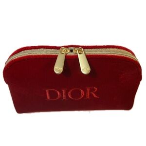 Christian Dior Red Velvet Double Zipper Travel Cosmetic Toiletry Evening Bag