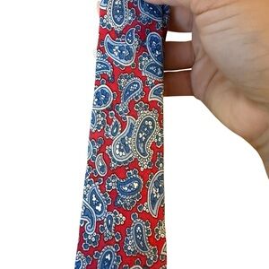 Pre owned overall excellent condition. There is one spot that looks slightly discolored (pictured) but very hard to notice. Gorgeous 100% silk, made in USA paisley tie.