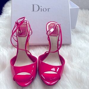 Fierce and fabulous, these block heel HOT PINK Christian Dior sandals are sure to make an impression! The moderate heel height makes them wearable and versatile for dressy and casual looks!