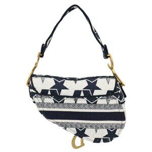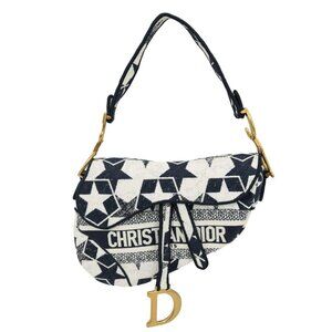 Christian Dior Saddle Embroidered Stars Canvas Hobo Bag White