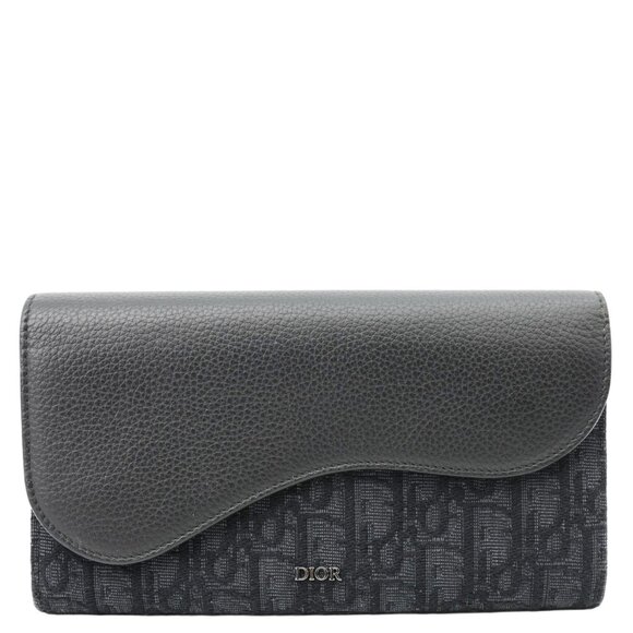 Christian Dior Saddle Oblique Jacquard Leather Wallet Black