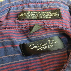 Christian Dior Shirt Mens XL Purple Blue Striped Button Up Rayon Made in USA VTG
