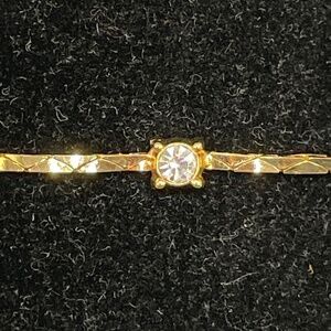 Christian Dior Signed Gold Plate Single Rhinestone Bracelet 7"