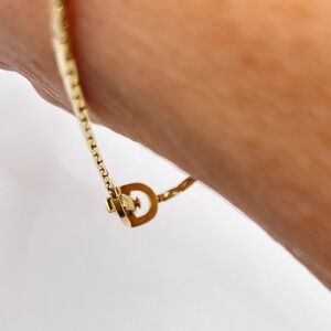 Christian Dior signed gold plated single rhinestone bracelet for 7" wrist. Fine snake chain holds a single rhinestone. Signed Chr. Dior. Pre-owned. Please ask if you have questions. Dainty. Classic. Feminine