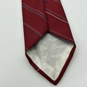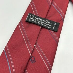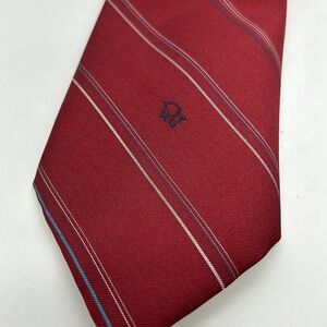Christian Dior Silk Blend Striped Tie Classic Embroidered Logo Italian