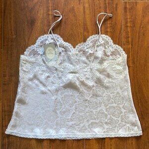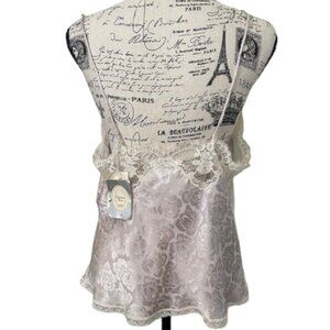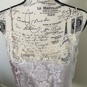Gorgeous Christian Dior rose pattern silk camisole with lace. Top has spaghetti straps and a tiny rose with mini pearls in the center. Camisole is blush pink with creme colored lace. Vintage but new with tags - tags are slightly bent from storage. 100% silk