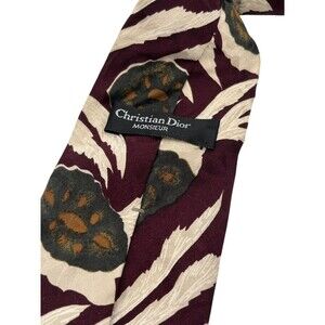 Christian Dior Silk Neck Tie Burgundy Floral Made in USA Fabric Italy Used