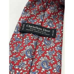 1 pre-owned Vintage Christian Dior Neck Tie with Red Blue Paisley design. Fabric made Italy, tie made in USA, 100% silk! Lightly worn, no visible stains or imperfections. Stored in a smoke-free home. Ready to ship! Always down to bundle items together. Feel free to reach out with any questions or offers!