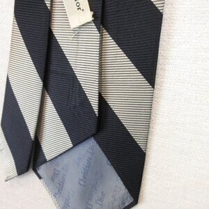 Christian Dior Silk Striped Tie Navy Gray Size OS