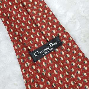 Christian Dior Silk Tie Burgundy Print Pattern.