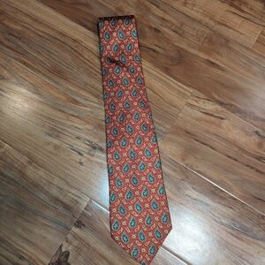 Perfect vintage condition Christian Dior tie. 100% imported silk. Red Blue and yellow/gold paisley pattern.