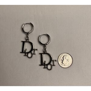 Christian Dior Silver DIOR Huggie Hoop Earrings