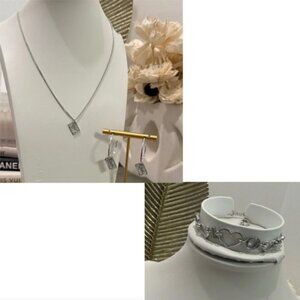 Christian Dior Silver Heart Embellished Necklace, Hoop Earrings & Bracelet 3pc