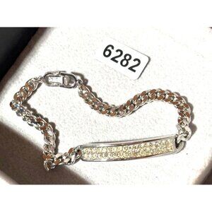 Christian Dior Silver-Tone Chain Bracelet With Crystal Embellished Bar & Secure