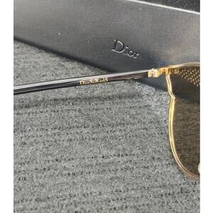 Stunning Christian Dior So Real sunglasses, a true statement piece! These designer aviators feature a chic gold and black color combination. Made in Italy, they exude luxury and style. The studded detailing adds a touch of edginess to the classic aviator shape. Perfect for adding a touch of glamour to any outfit.